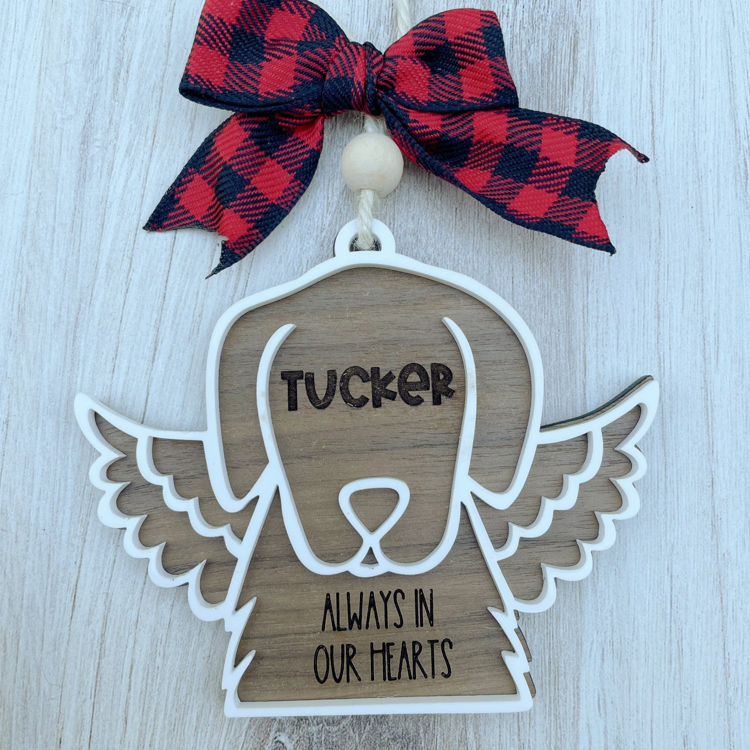 We know your pets are members of your family and we also know how hard it is when they cross the Rainbow Bridge. These laser engraved ornaments commemorate the life of your furry friend. Laser engraved and assembled from walnut and acrylic, add your pet's name for a special family keepsake. Choose between dog or cat ornament. Ornament comes with ribbon for hanging (ribbon may vary from photo depending on availability at time of order.)