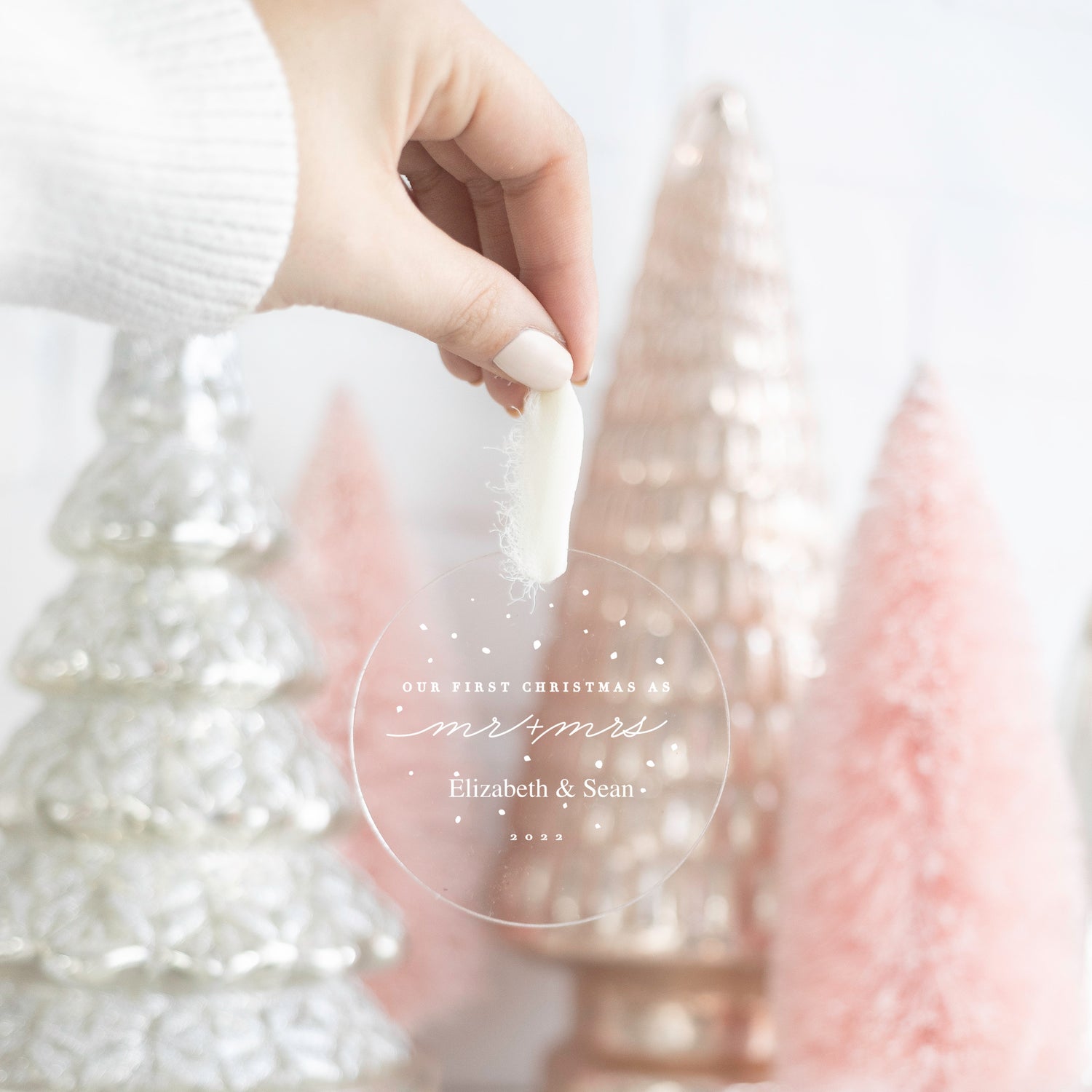 Celebrate your nuptials with this laser engraved acrylic ornament. Ornament is crafted in our New Jersey studio and will contain the names and dates of the newlyweds. Makes a great gift to commemorate this special moment.