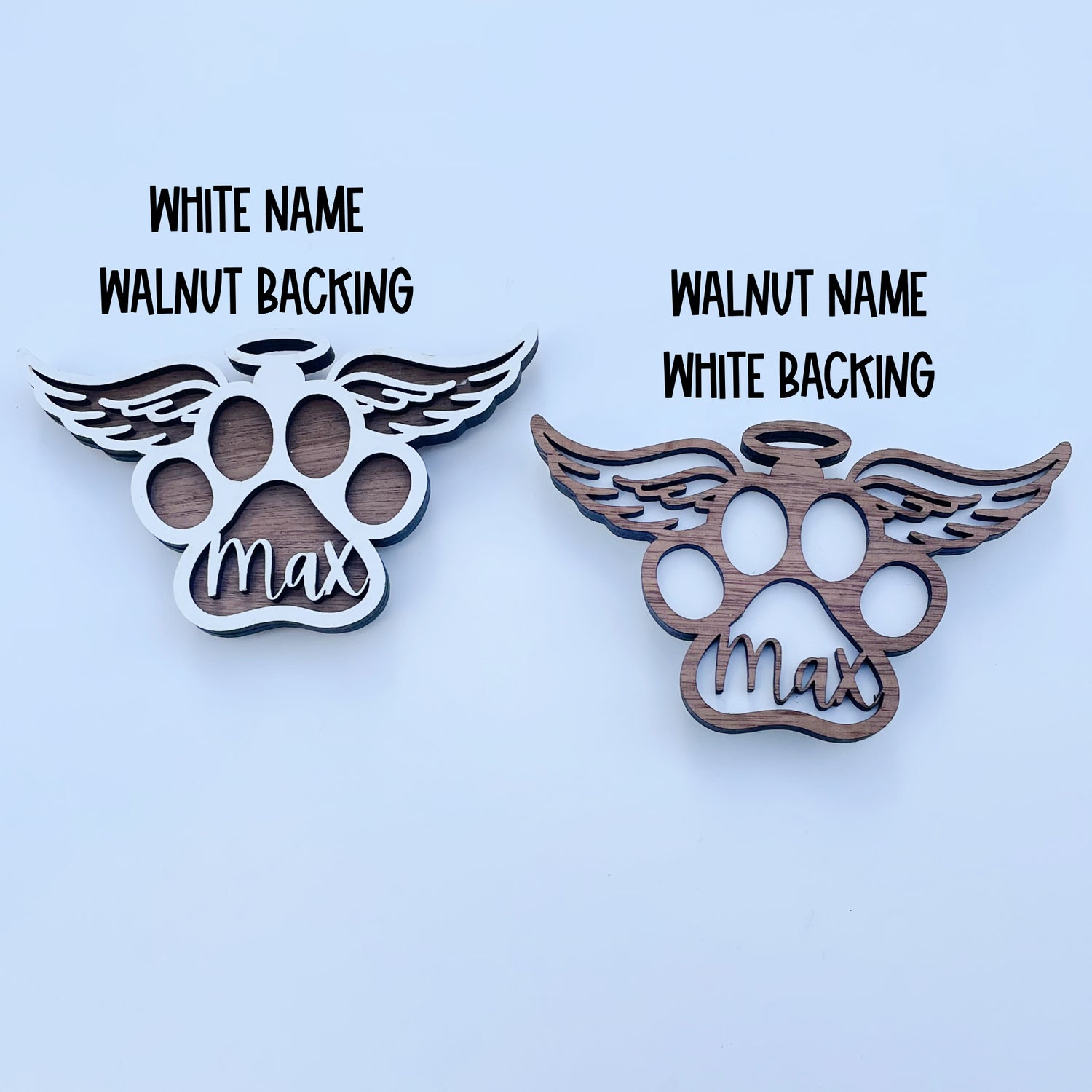 ❤ Our laser cut personalized paw print magnet comes iin your choice of white or walnut (white mdf topper is backed with walnut wood/walnut topper is back with white mdf)
