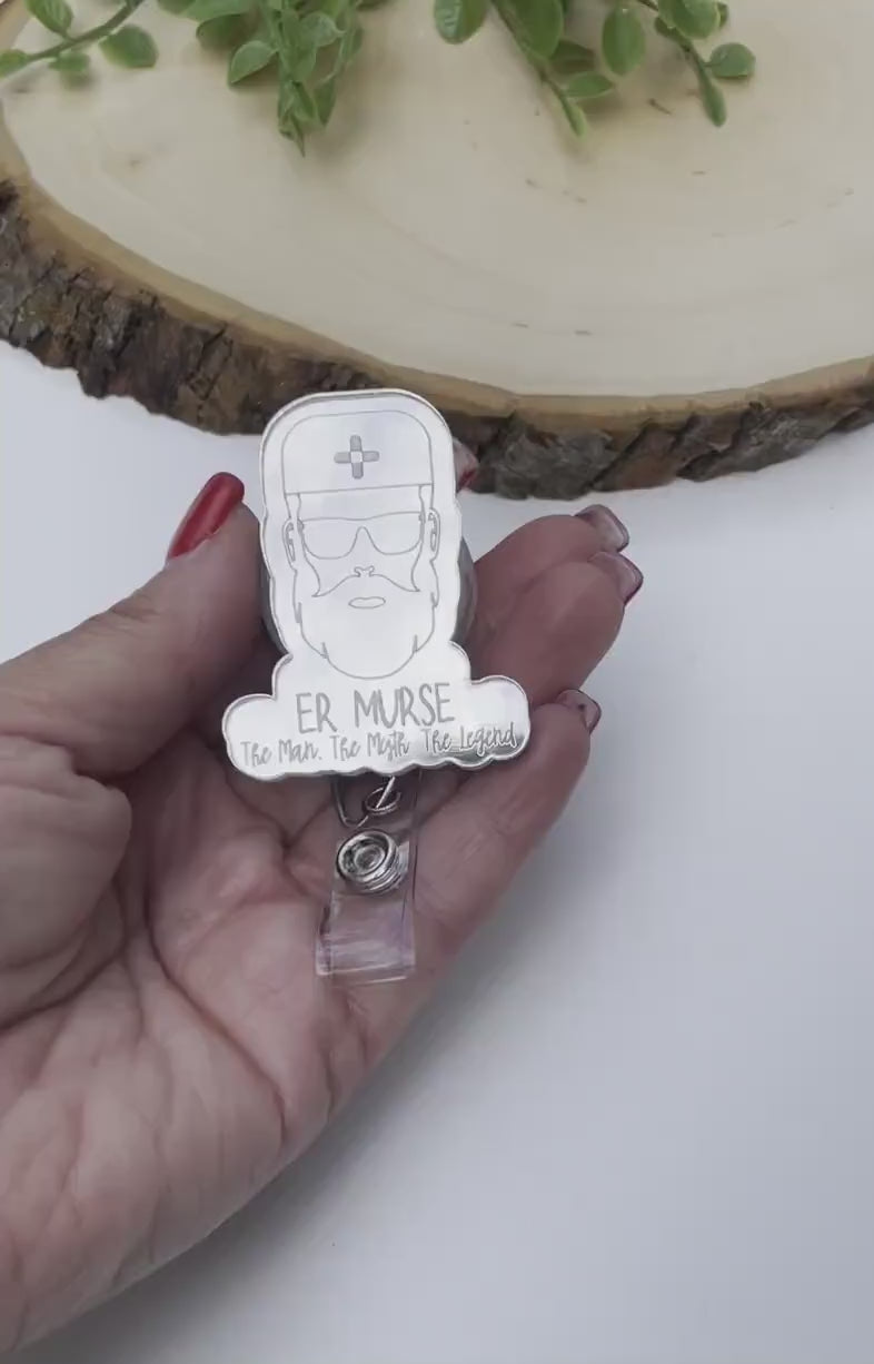 Silver Badge Reel - ER Murse Badge Reel - Funny Badge Reel - Badge Reel for Him- RN Badge Reel - Nurse Gift - ER Nurse Gift