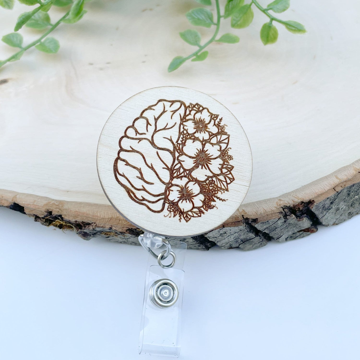 Wooden Badge Reel - Floral Brain Badge Reel - Anatomy Badge Reel - Neurology Badge Reel - Neurosurgeon Badge - RN Badge Reel - Nurse Gift