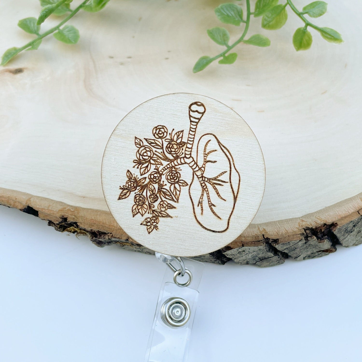 Wooden Badge Reel - Floral Lungs Badge Reel - Anatomy Badge Reel - Respiratory Therapist Badge Reel - RRT Badge Reel - Pulmonology Badge